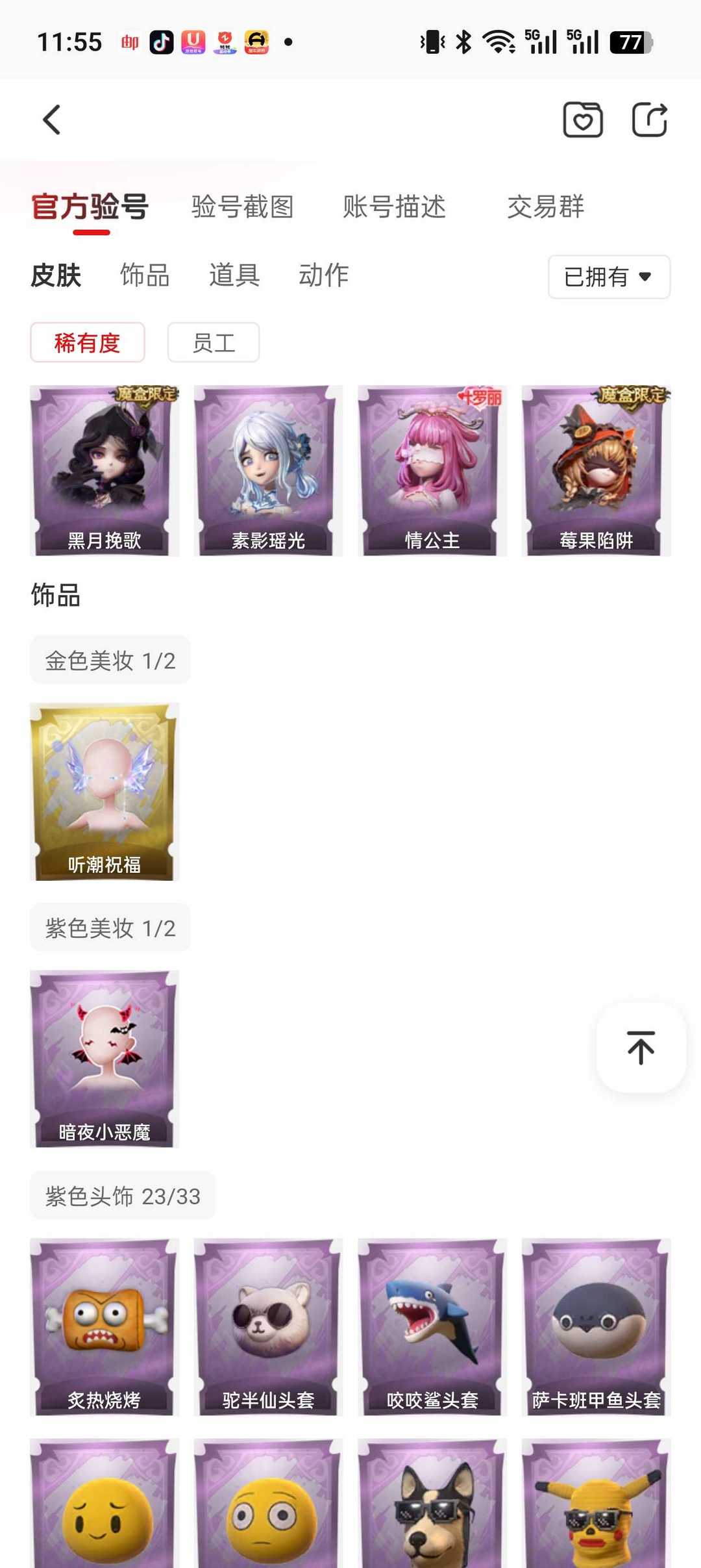 1粉1红5金8紫30道具♥沧海之遗♥炽天使♥瑶台梦♥剑仙♥海月息潮♥圣光之谕♥黑月挽歌♥莓果陷阱