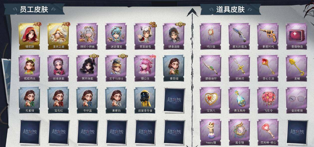 3金皮 2魔盒 7紫皮 小黄-遗失的童话,逍遥-莲华渡,薇薇安-圣光之谕,巫铃儿-镜花辞,逍遥-泽引
