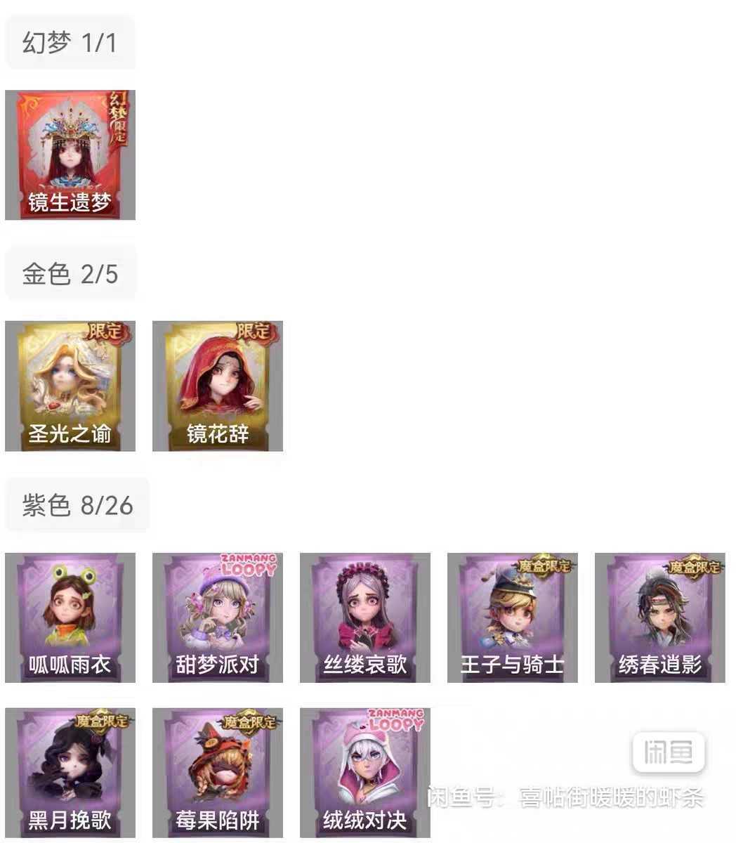 1幻梦6金27紫【镜生遗梦】渡鸦公爵【全金皮+全紫皮+全道具】【兔宝特权1月21号到】