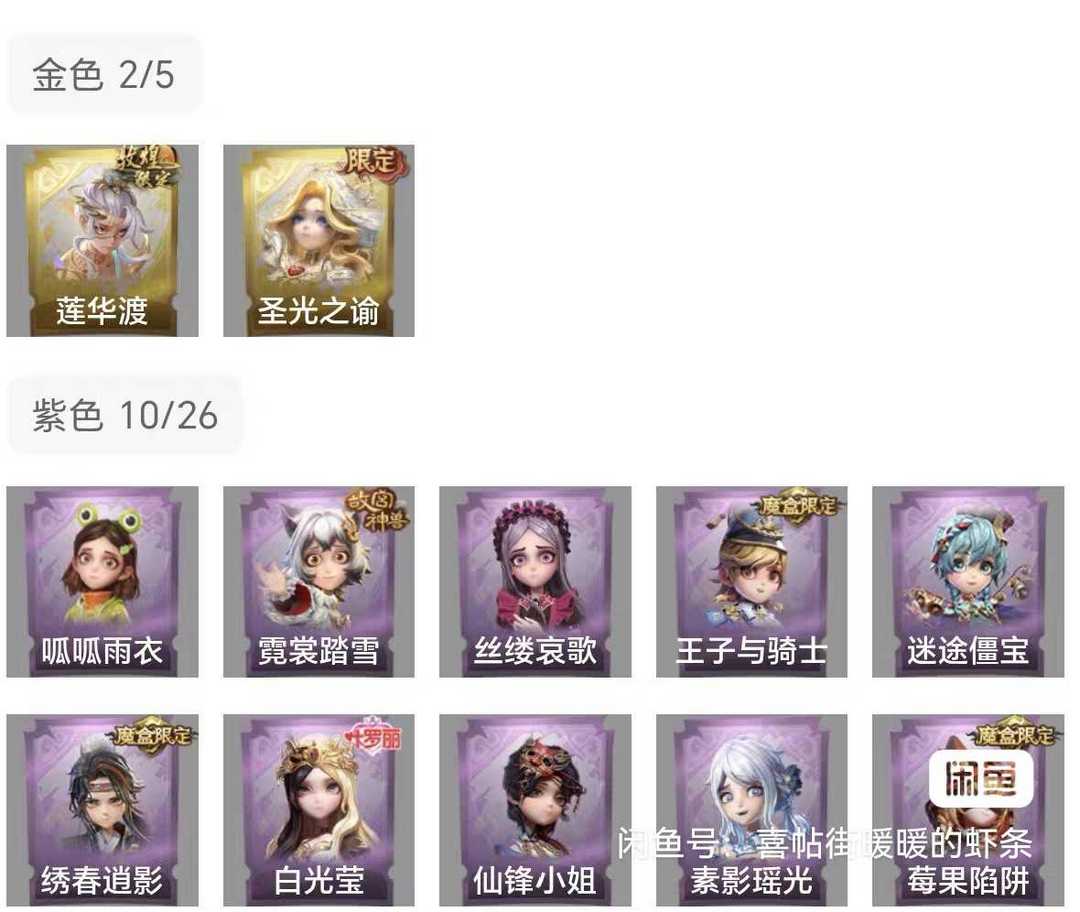 2金10紫⭐莲华渡圣光之谕仙锋小姐白光莹⭐阿念逍遥莉莉魔盒迷途僵宝霓裳踏雪⭐卡皮巴拉铲惊魂娃娃最后独