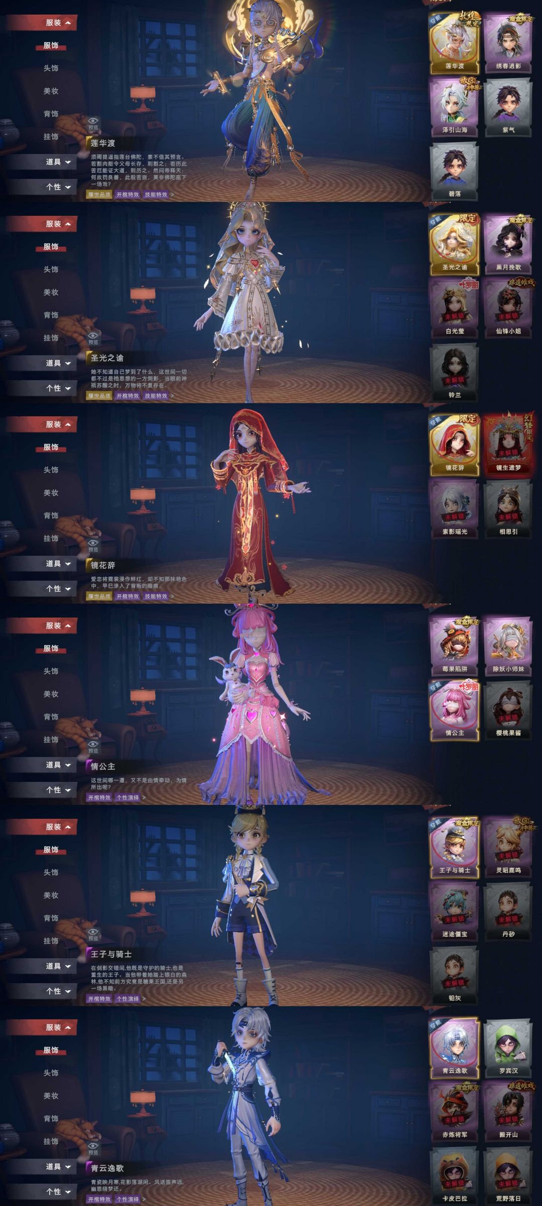 3金♉11紫♉莲华渡♋圣光之谕♋镜花辞⛎绣春逍影⛎泽引山海♑黑月挽歌♑莓果陷阱♉情公主♉王子与骑士