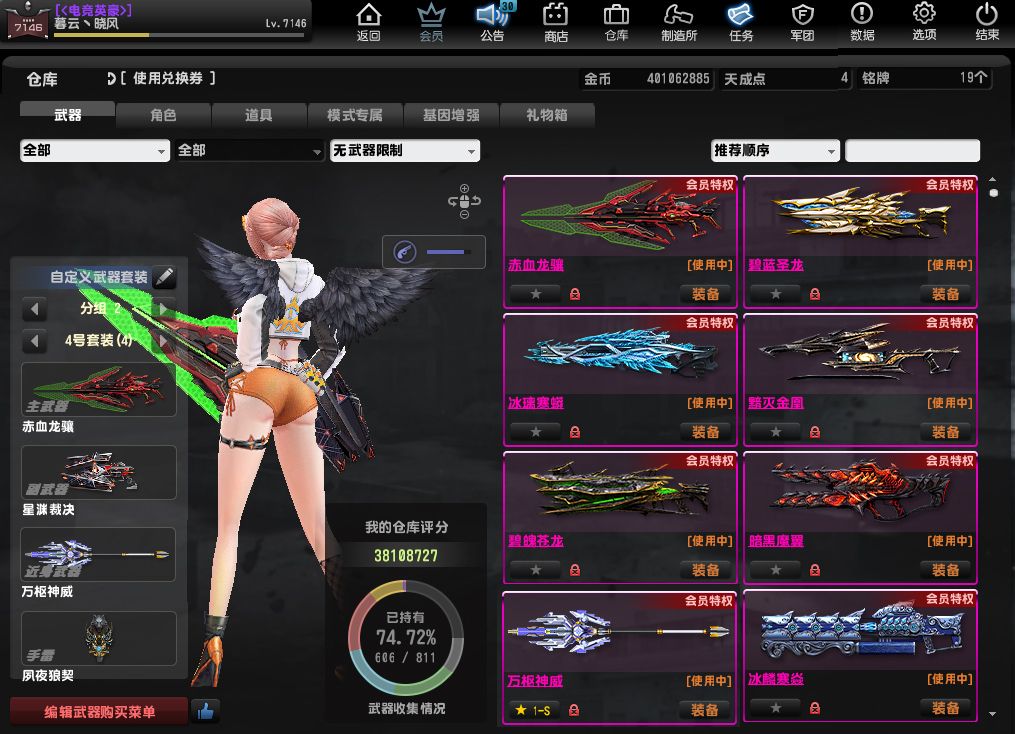 色●双黯黯火黯影四特典狙机枪●冰璃寒蟒蛇神老四件套龙神兔神鬼次元天使雷●维京套闪电野牛去雾