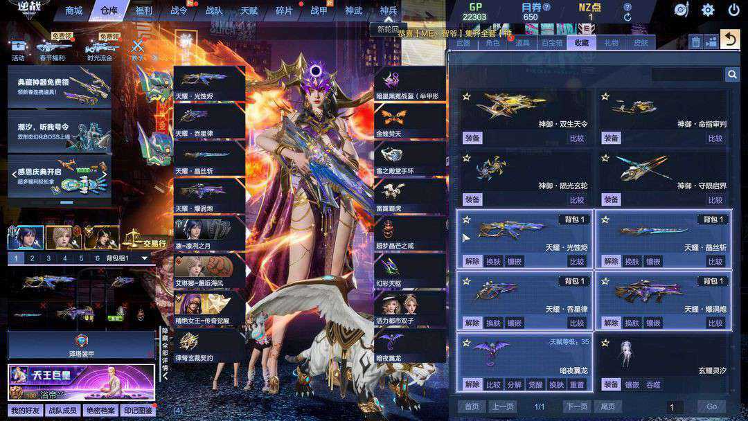 ♉神凰套天帝套龙凤之力♉陨星套流光七神武⑨史诗♉大司命血翼紫盔塞博离振30宠