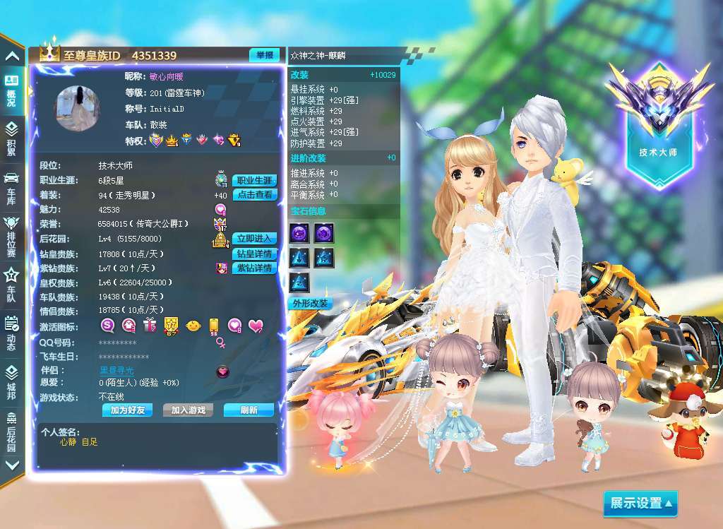 A赛车数量31,机甲2,套装122套 ,坐骑3都是满级改装