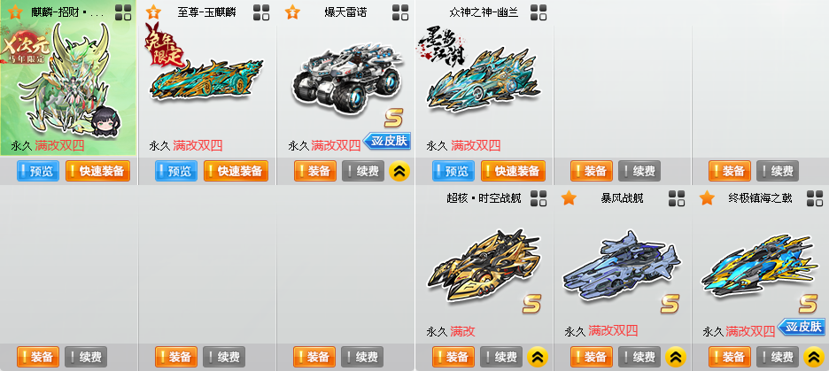 4S〓满改双四至尊玉麒麟〓满改终众〓暴风雪〓王者剃刀〓满改雷诺〓喜羊羊10