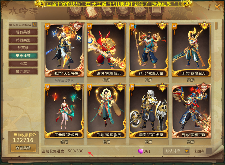 (5年少锦鲤)585皮肤极品玩具鹿鸣风啸 110W物理幻神30W魅力幸运鹅差年少张角