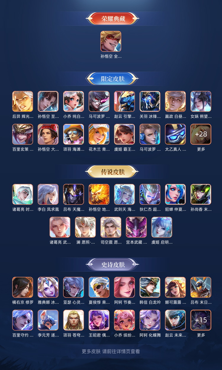 【V10荣耀 746皮】孙悟空无双无相皮肤 荣耀贵族/743全满皮 /大国鲁班貂蝉墨子 小国老虎 芈月/满荣耀典藏/满无双