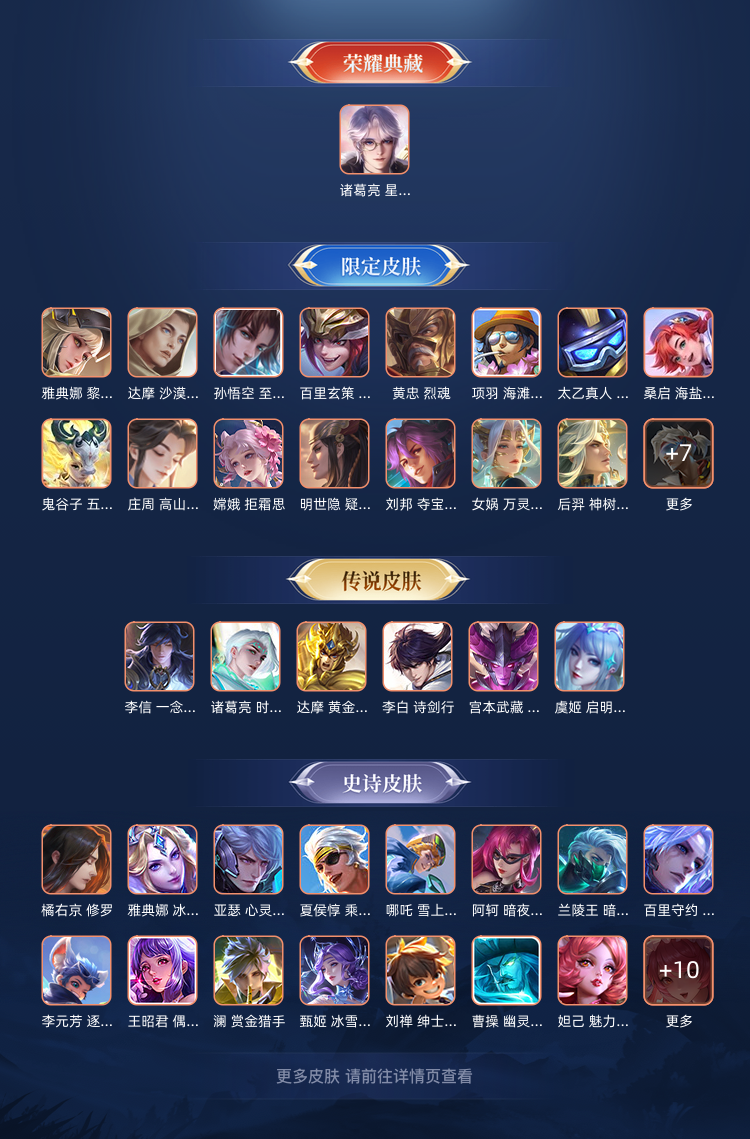 【V10 459皮】11典藏(凯木兰诸葛李白猴子)60传说8星传说山海套装齐天大圣诗剑行李逍遥禁言~