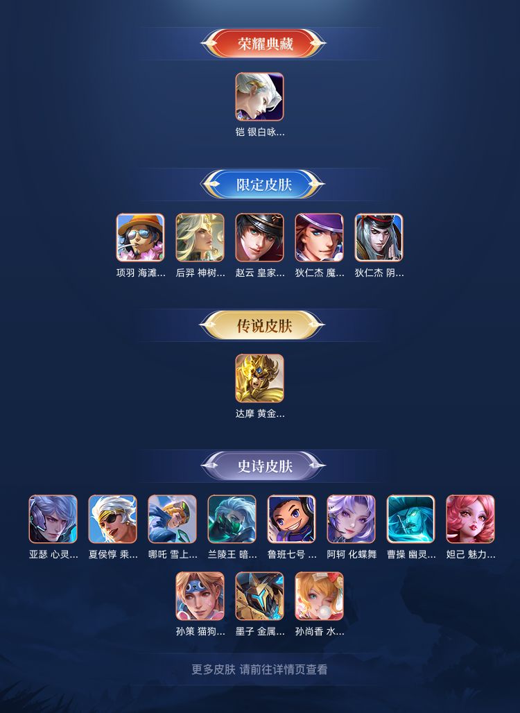 【V10 487皮】无双妲己【三国服李元芳】【V11 500P】打野50段【九万战韩信澜曜】【7天幕9星传12典藏】禁言