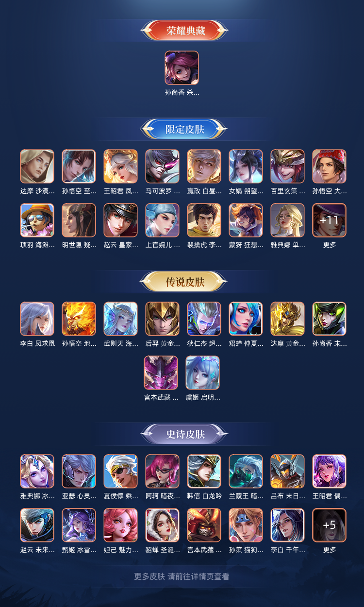 【V10 430皮】贵族v10 5典藏皮肤✅5无双皮肤✅70传说皮肤✅121史诗皮肤✅401皮肤✅双小国标
