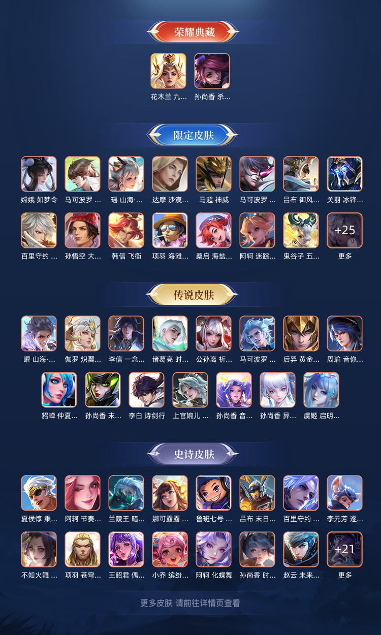 【V8 291皮】两典藏⚡花木兰九霄神辉孙尚香杀手不太冷⚡21传说⚡露娜霜月吟⚡李白诗剑行⚡镜炽阳神光⚡吕布怒海鳞威等