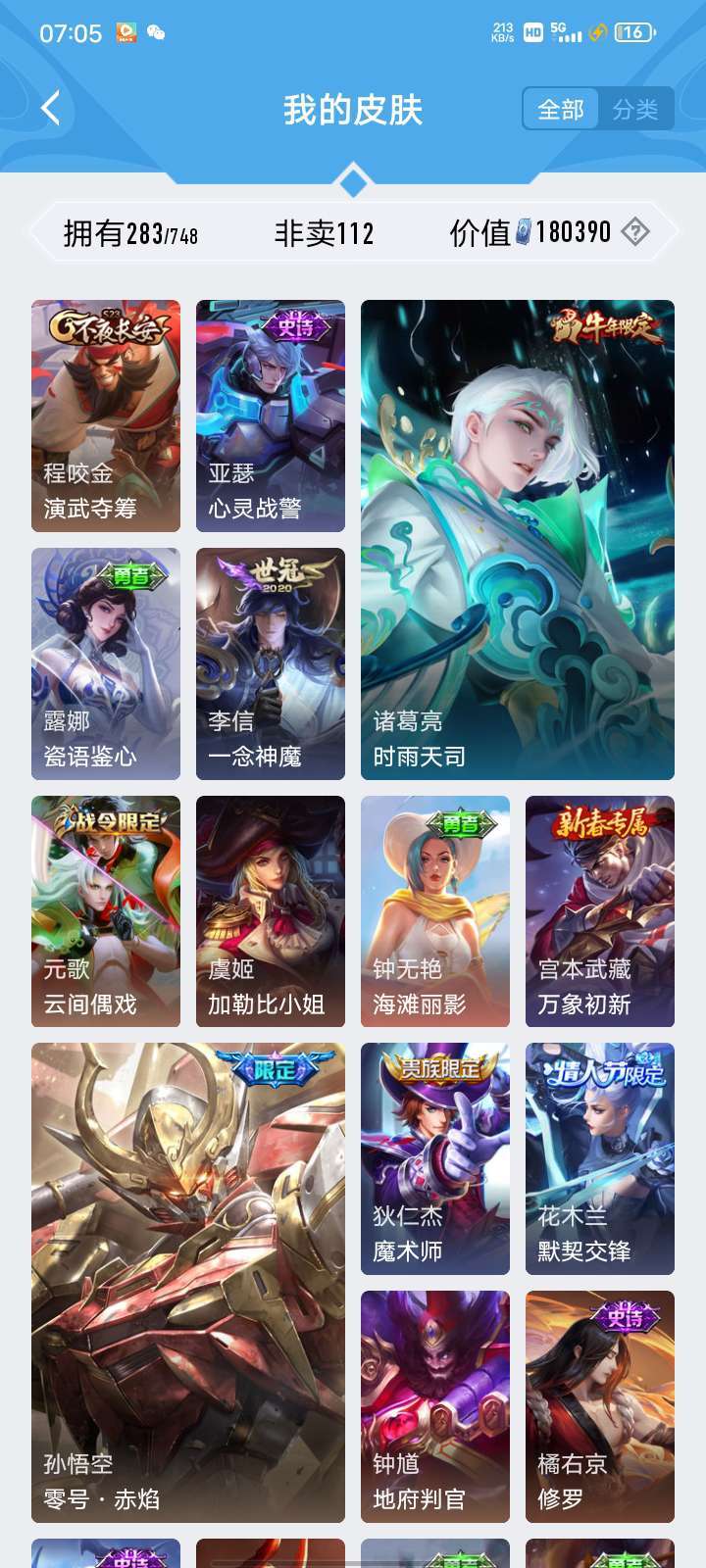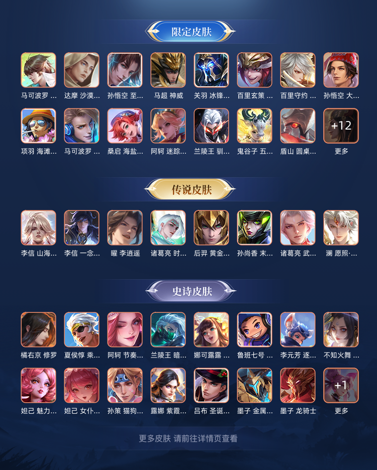 该有的皮肤基本都有,限定也有一部分,希望玩得开心