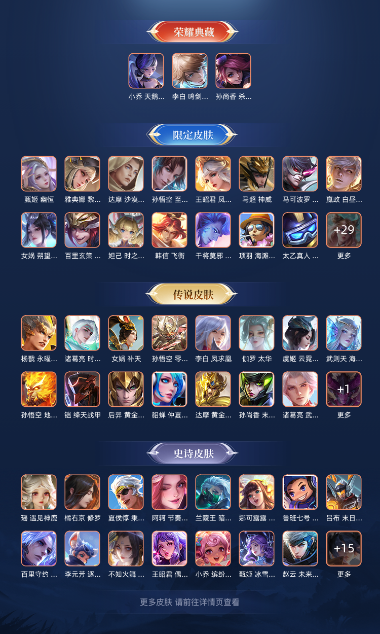 aq9历史大国标女娲万战嫦娥 贵族10 荣耀典藏6 传说皮肤21 史诗皮肤69