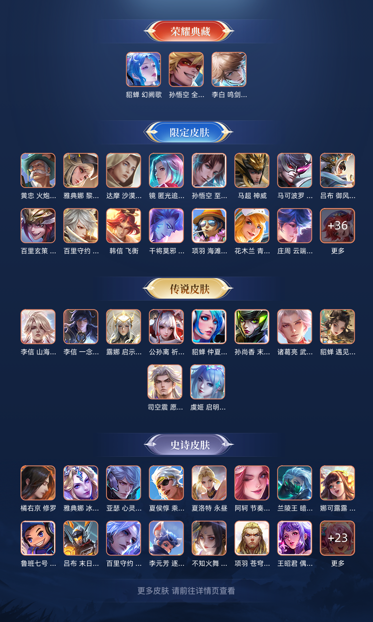 【V7 218皮】瑶荣耀典藏⭐王昭君星穹之声⭐孙策孙尚香龙限等稀有皮肤⭐禁道具/禁巅峰/禁挂机/可排位