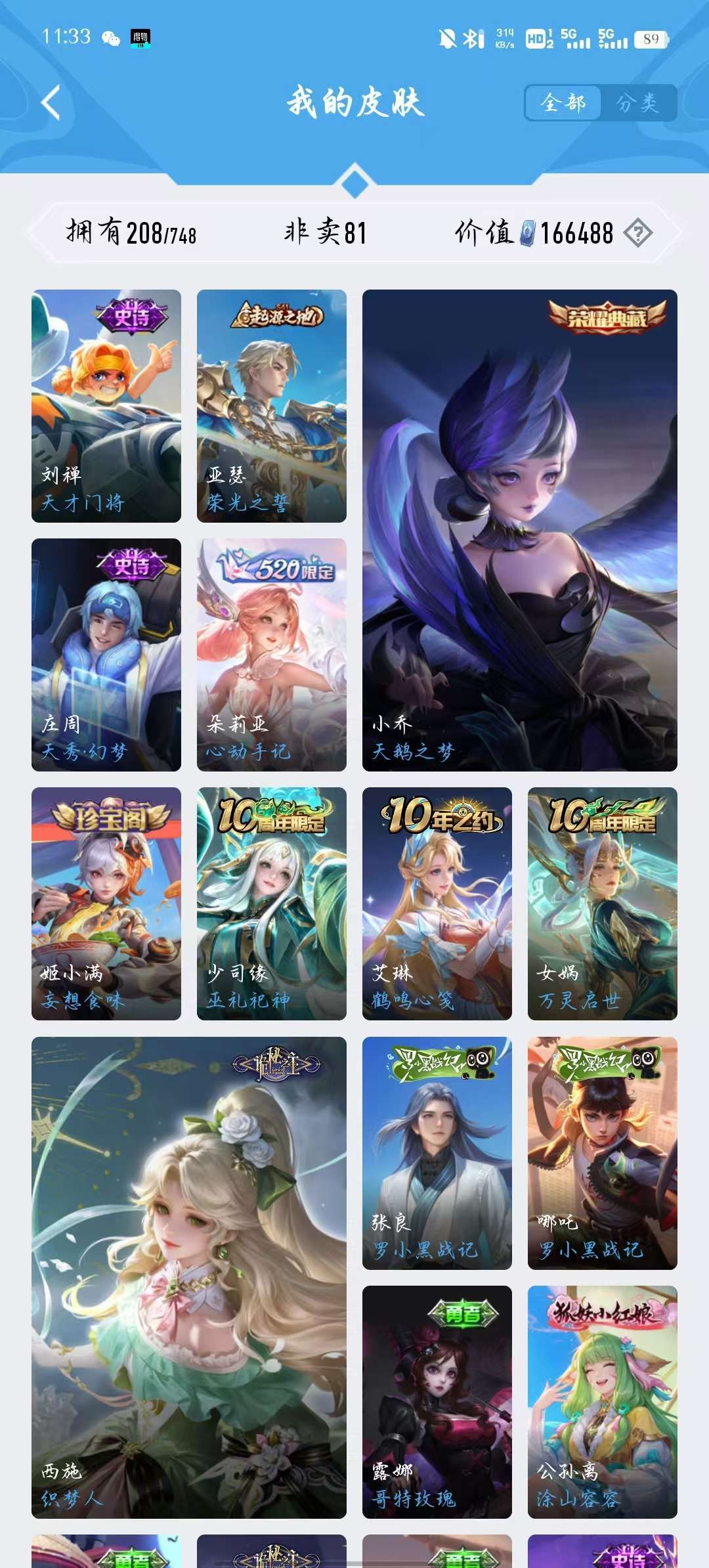 【V9 535皮】狐妖小红娘全皮!死神全皮!三丽鸥全皮!珍品传说全皮!草原三傻!!蛇限全皮!龙限全皮!5无双!