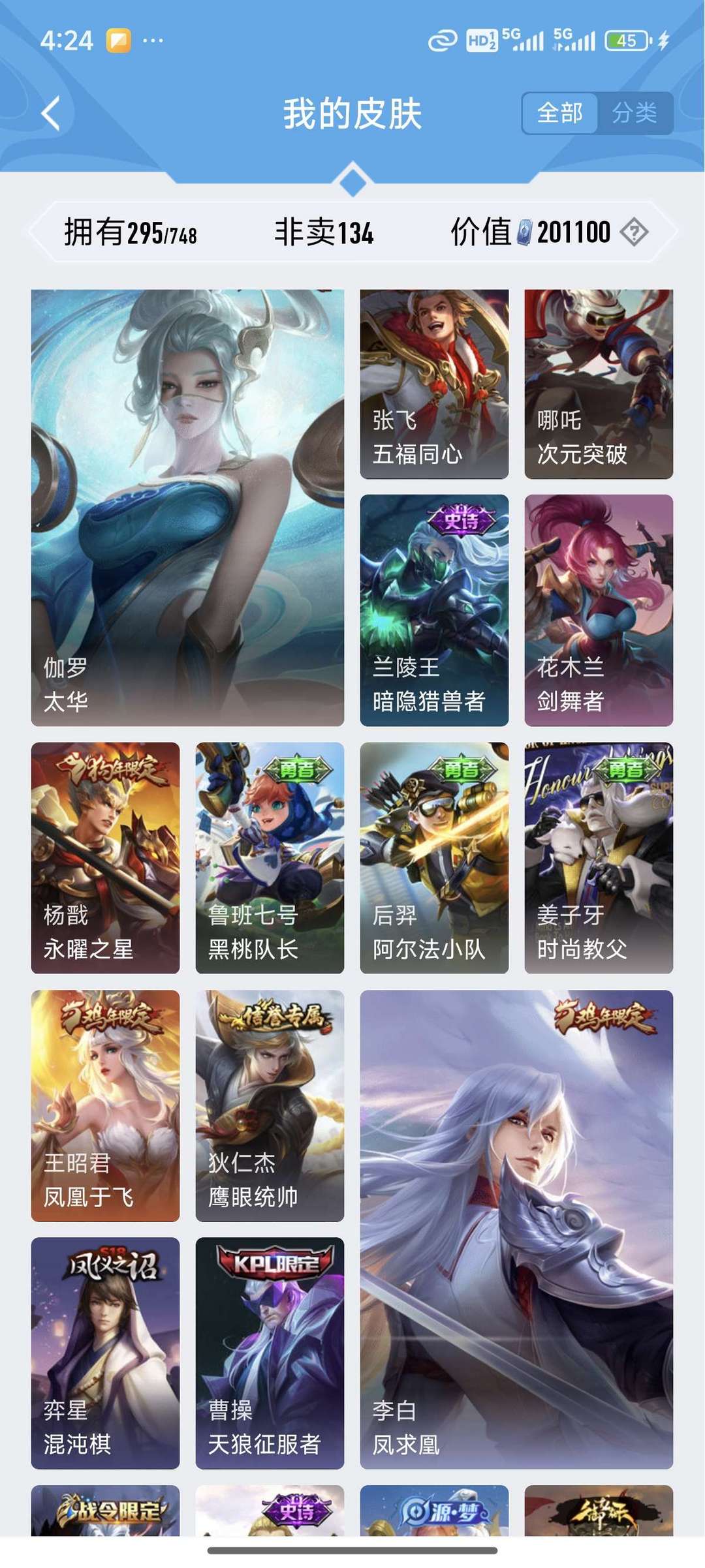 【V8 345皮】300多个皮肤,无双王者,满铭文,除武则天以外英雄全有且排位均可使用。