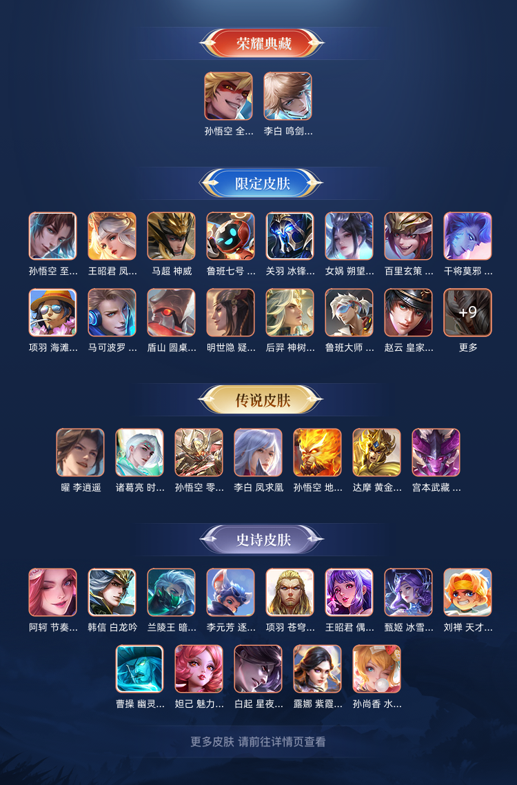 打野号★铜标在榜白虎志★大圣娶亲★街头霸王★上官婉儿周年皮肤★有刺客铭文