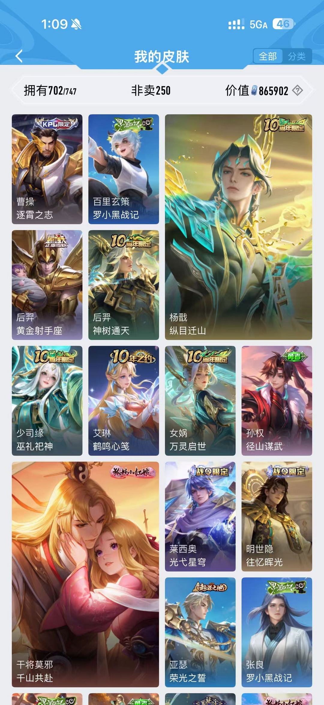 【V7 260皮】V8 1典藏 16传说 81史诗 97限定❤️小姐姐爱玩❤️中单射手皮肤多❤️虞姬全皮❤️