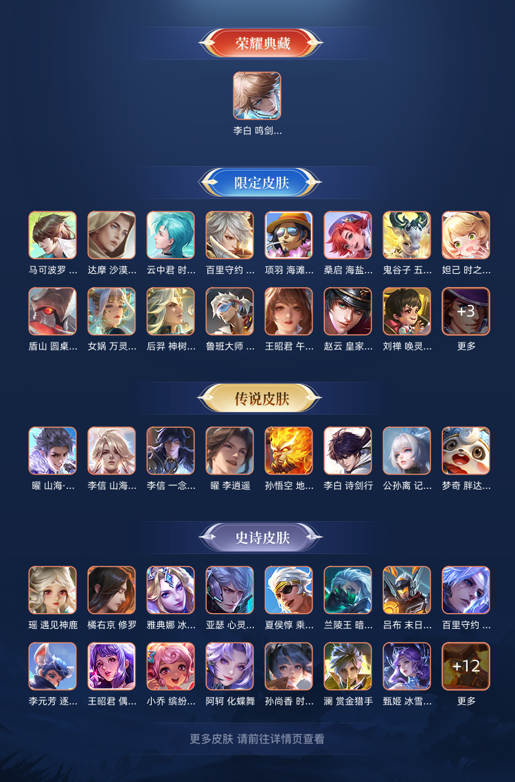 王者❤️无双贵族v10❤️ 皮肤575❤️14典藏❤️6无双❤️限定219