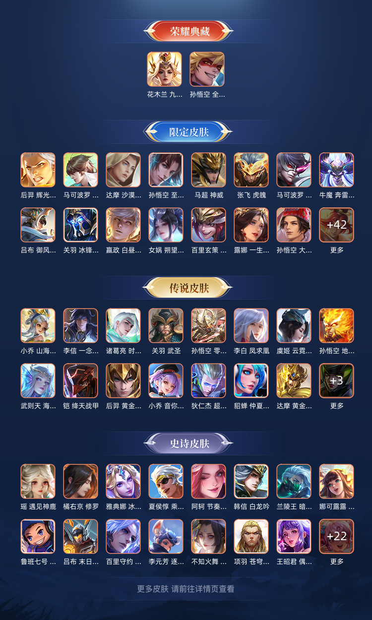 【V10 469皮】花木兰全皮|李信全皮|5套全年限|鸣剑曳影|8典藏|多热门传说|至尊宝|深海之息九霄神辉❥无限飓风号