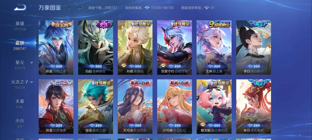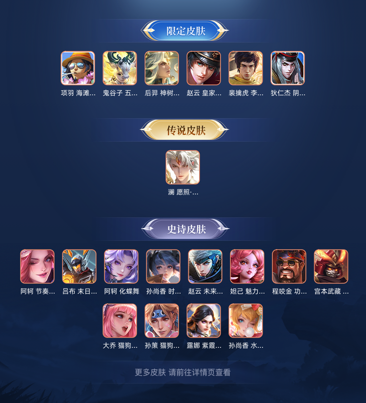 皮肤两百多个,皮肤多样化,王者段位希望有人租