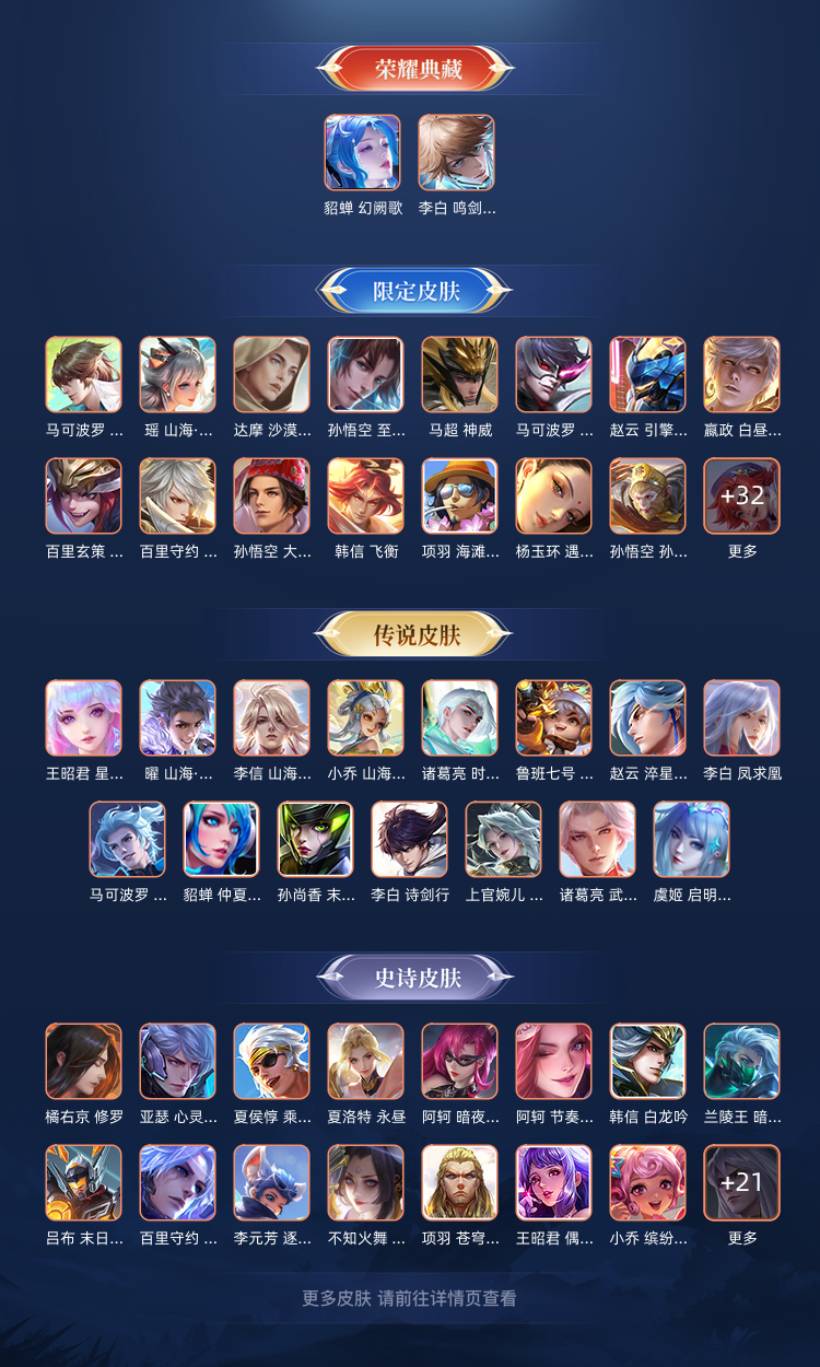 【V7 331皮】有李白和貂蝉的典藏皮肤,还有很多传说皮肤