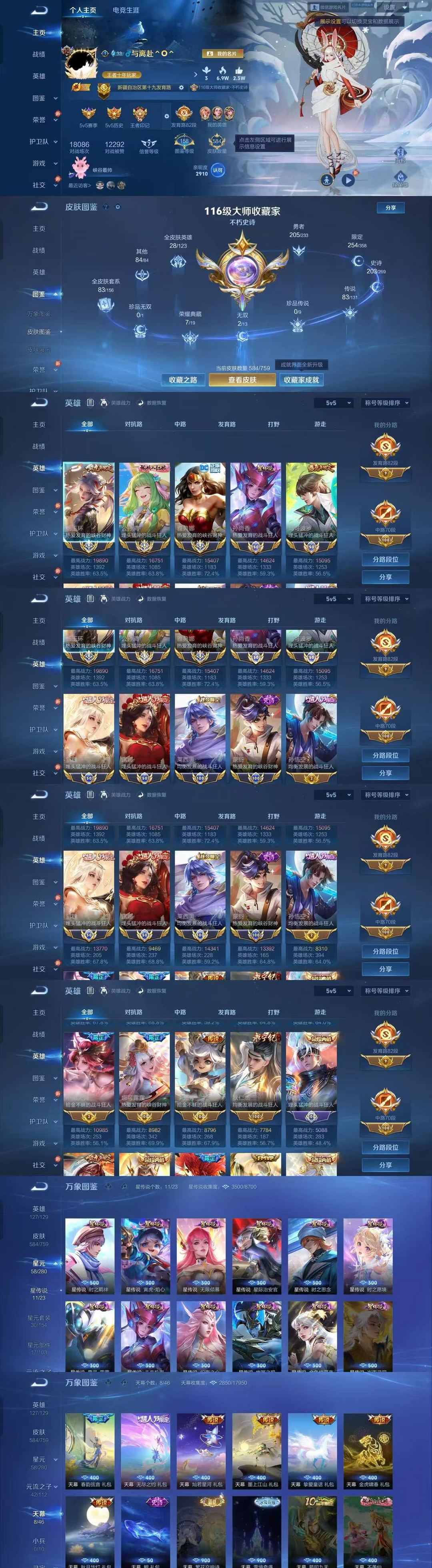 【V9 470皮】V10⚡馥梦繁花⚡无相⚡国服⚡女号468皮6典藏1珍品无双4无双2珍品传说5星传说45传说159史诗