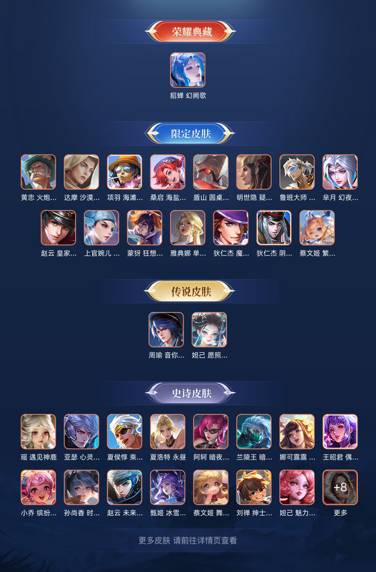 【V3 180皮】凤求凰,全息碎影,全部精品皮。fmvp貂蝉,传说史诗级皮肤一堆,之前是贵族七,充了2.5k