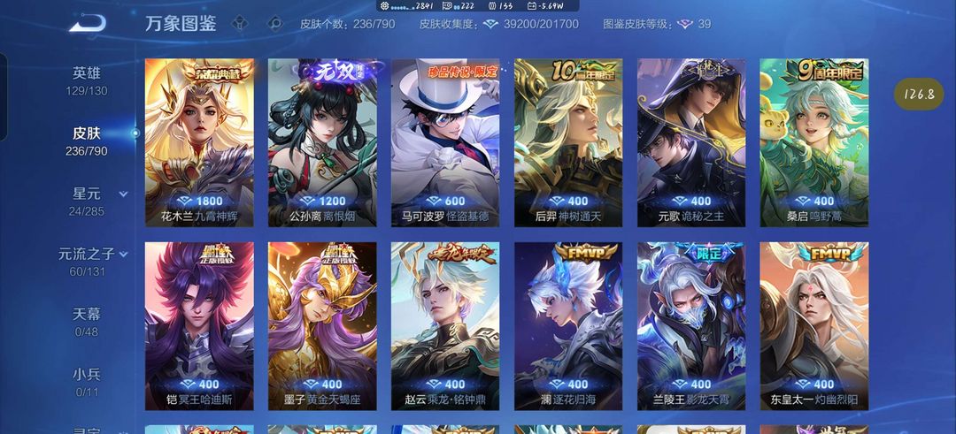 【V3 327皮】历史1w3阿离多赛季荣耀贵族9 稀有皮肤如白虎志神威梅西小乔周瑜限定冰封战神等等