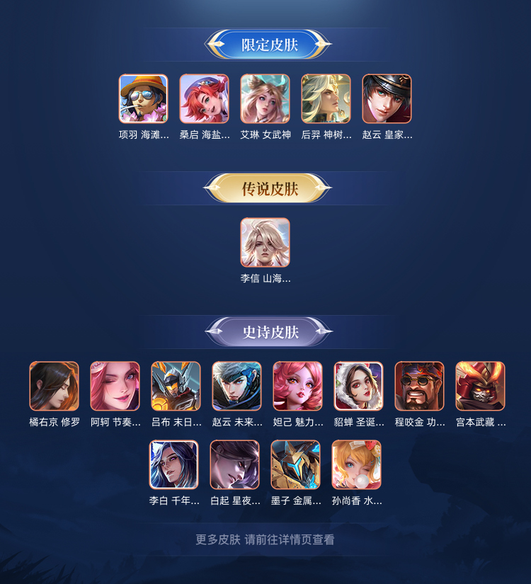 【V3 160皮】荣耀典藏,传说兼限定品质皮肤畅玩
