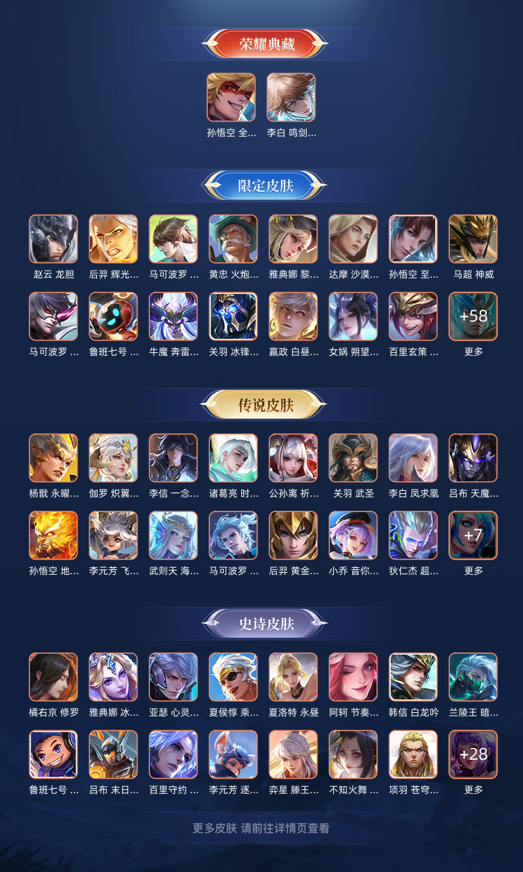 1典藏10传说50史诗191个皮肤124个英雄满铭文