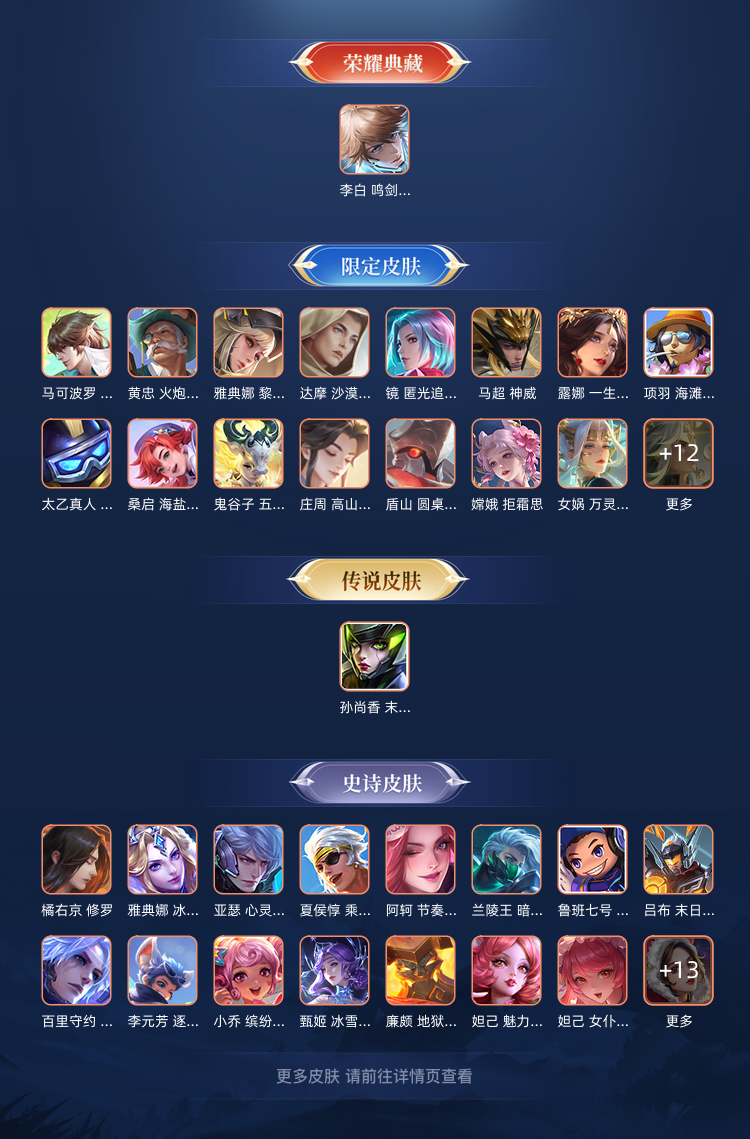 【V7 254皮】2个荣耀典藏9个传说1个珍品传说80个史诗