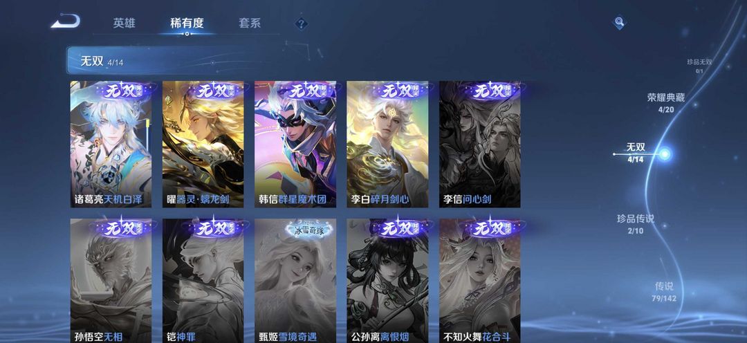 【V10 304皮】极品v10 300极品皮肤,全英雄,12荣耀水晶,41传说,102限定,107史诗,虐菜神号,段位低