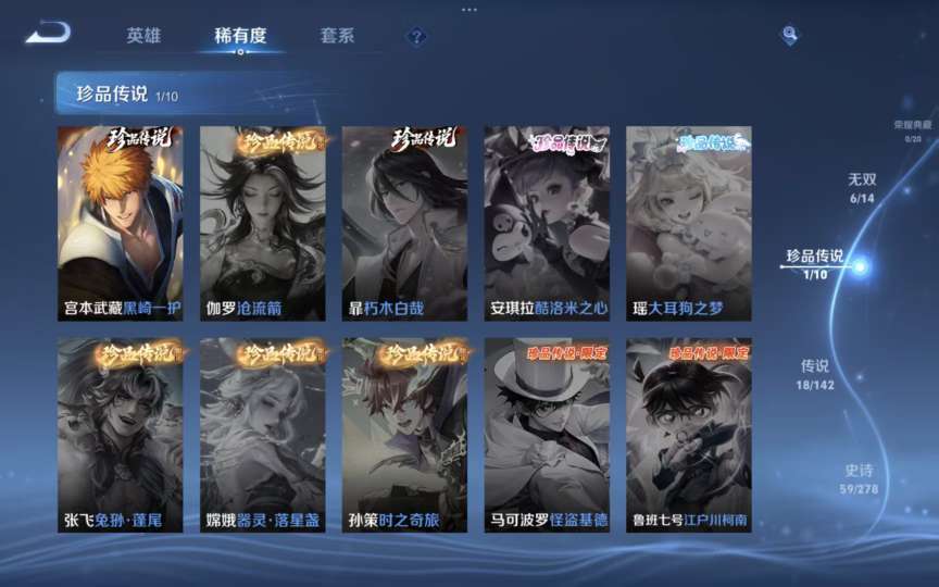 【V8 185皮】v8,194皮,6无双,1珍品,18传说,李逍遥,神骥·越千峰,永曜之星史诗至尊宝,满级铭文
