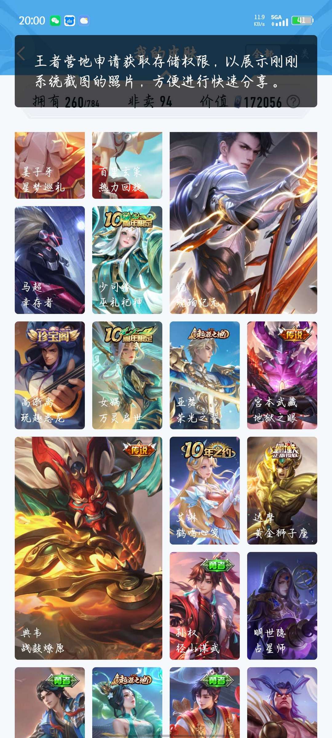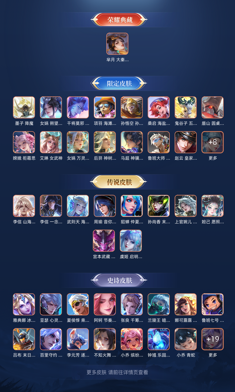 【V7 358皮】351个皮肤★历史6⃣️个金标★铭文全套★超多稀有老皮梅西★白虎志★凤求凰★至尊宝等
