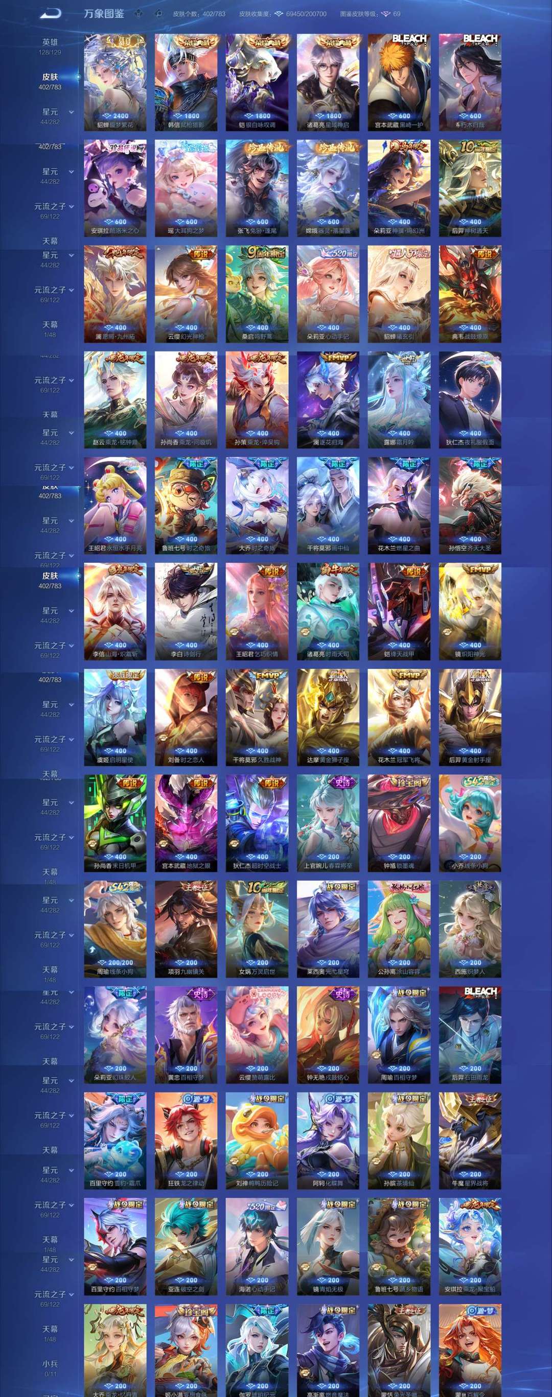 【V9 300皮】两典藏 两无双 仨珍品基本全是高质量皮肤 可看截图 适合美女玩 美女一手号