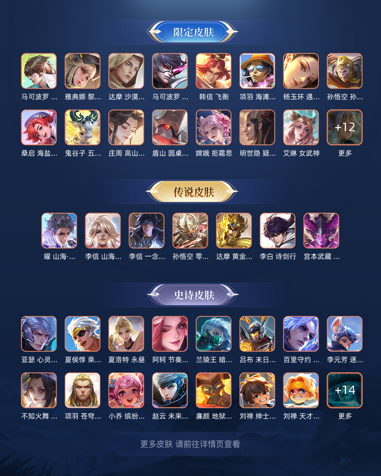【V9 311皮】典藏3共301皮韩信李白马超干将全皮公孙离李信耀韩信李白无双以及各种传说限定其余均有手感优良皮肤