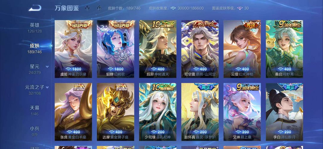 【V6 226皮】花木兰荣耀典藏,孙策淬吴钩,吕布怒海凌威”,司空震澜蛇年限定,后羿黄金射手座,达摩黄金狮子座