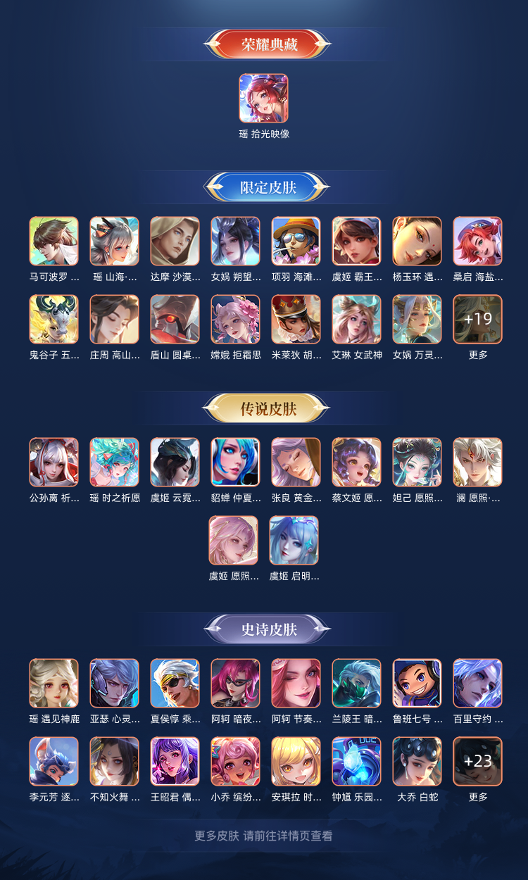 【V8 352皮】瑶除了无双都有 朵莉亚刘禅全皮貂蝉虞姬皮肤多大司命少司缘西施全皮公孙离祁雪辅助基本上都有皮肤