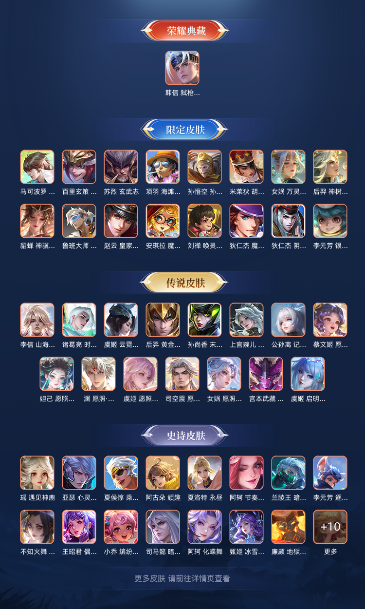 【V10 505皮】6个典藏,李白全皮,木兰差一个新皮,韩信差一个无双
