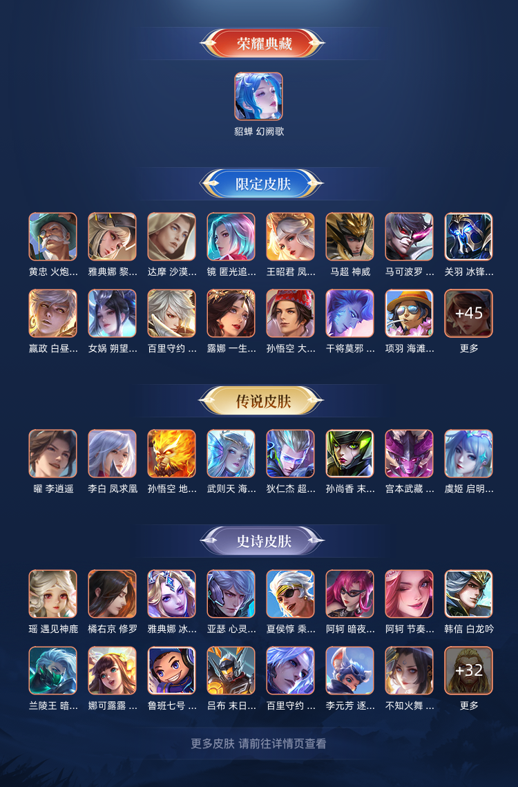 【V7 264皮】典藏皮肤九霄神辉,绝版DC联动皮神奇女侠。全英雄+全铭文,88款史诗、127款勇者皮。