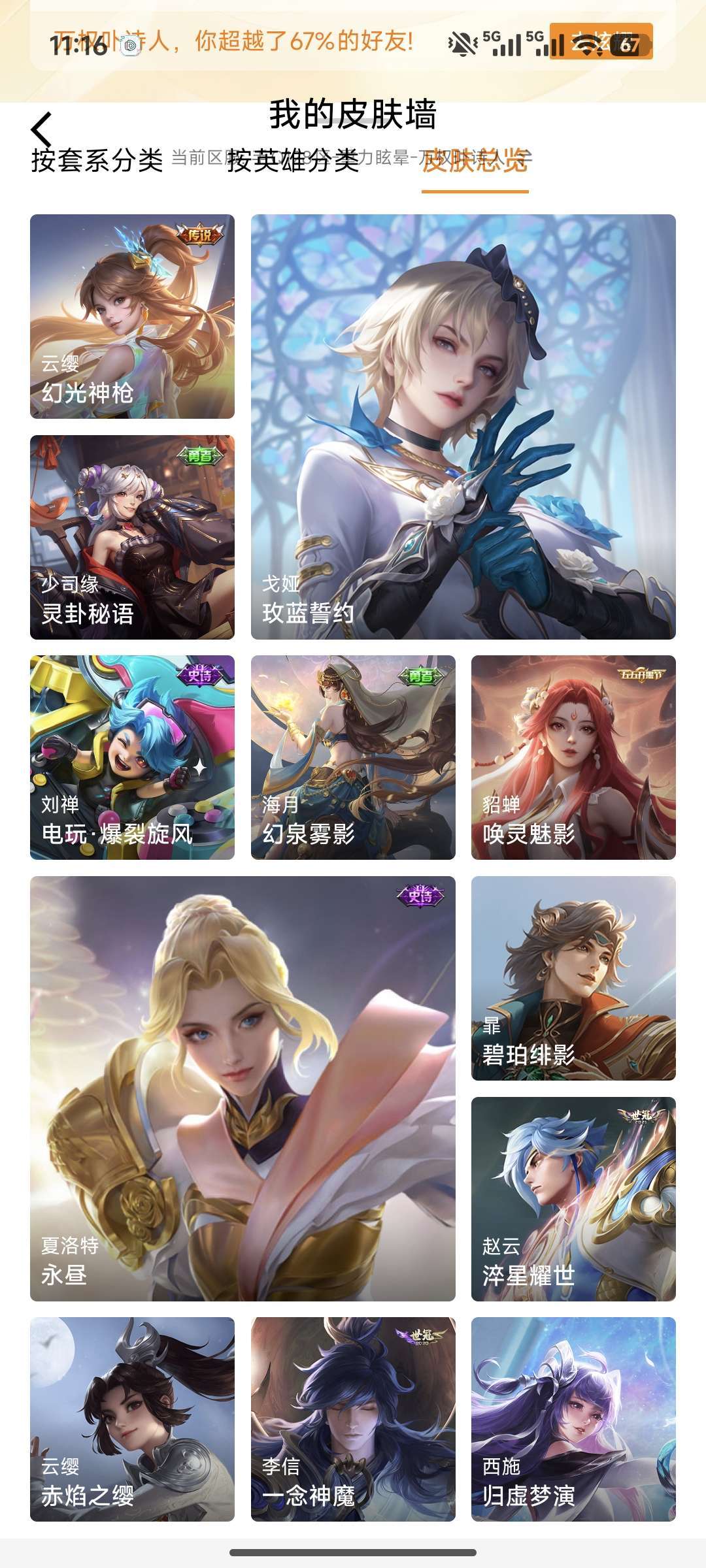 英雄基本上满着,皮肤如图所示,新赛季段位钻石