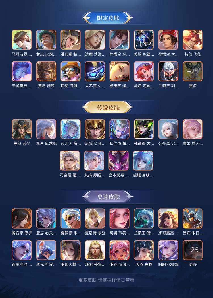 李信限定,花木兰荣耀典藏,以及其他英雄皮肤总共200以上皮肤优质号