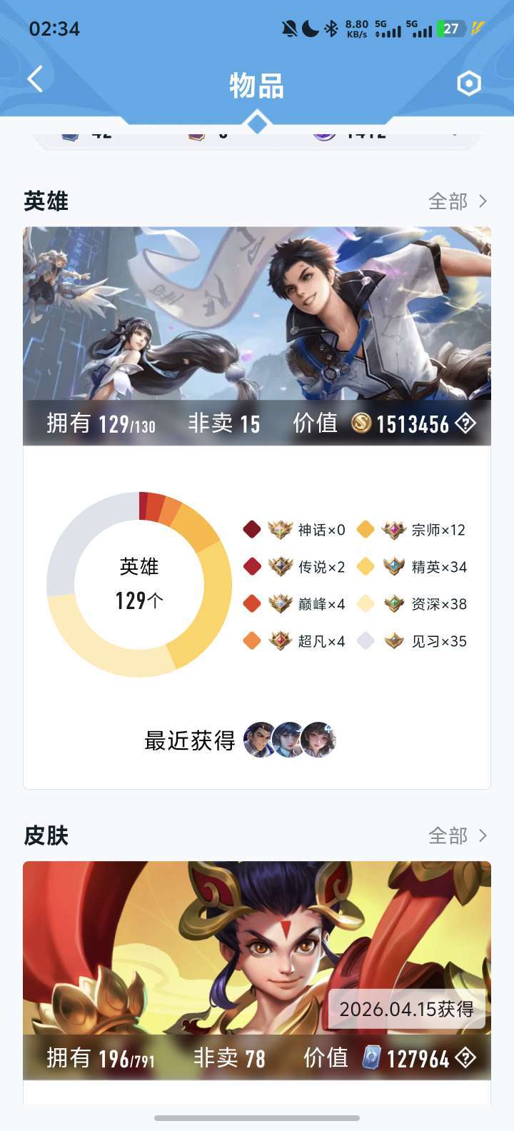 英雄基本上满着,皮肤如图所示,新赛季段位钻石