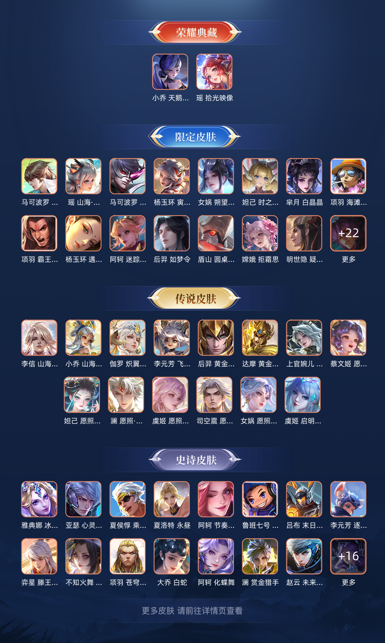 【V8 323皮】小乔大乔王昭君女娲安琪拉妲己貂蝉限定。小乔天鹅之梦,甄姬无双,李白凤求凰,玄策白虎志多个省标