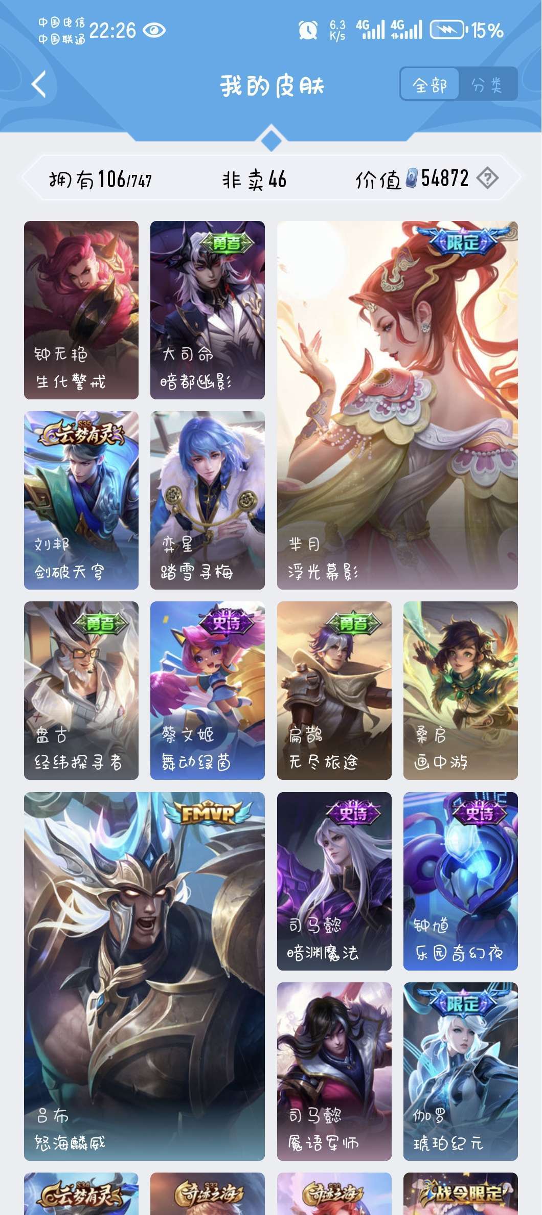 106精品皮肤,46个限定,琥珀纪元伽罗,怒海麟威吕布,圣弓游侠后羿,