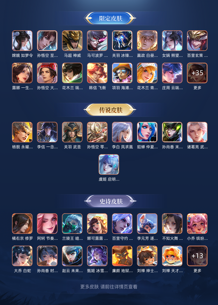 多皮肤全英雄,有典藏皮肤,可排位可匹配