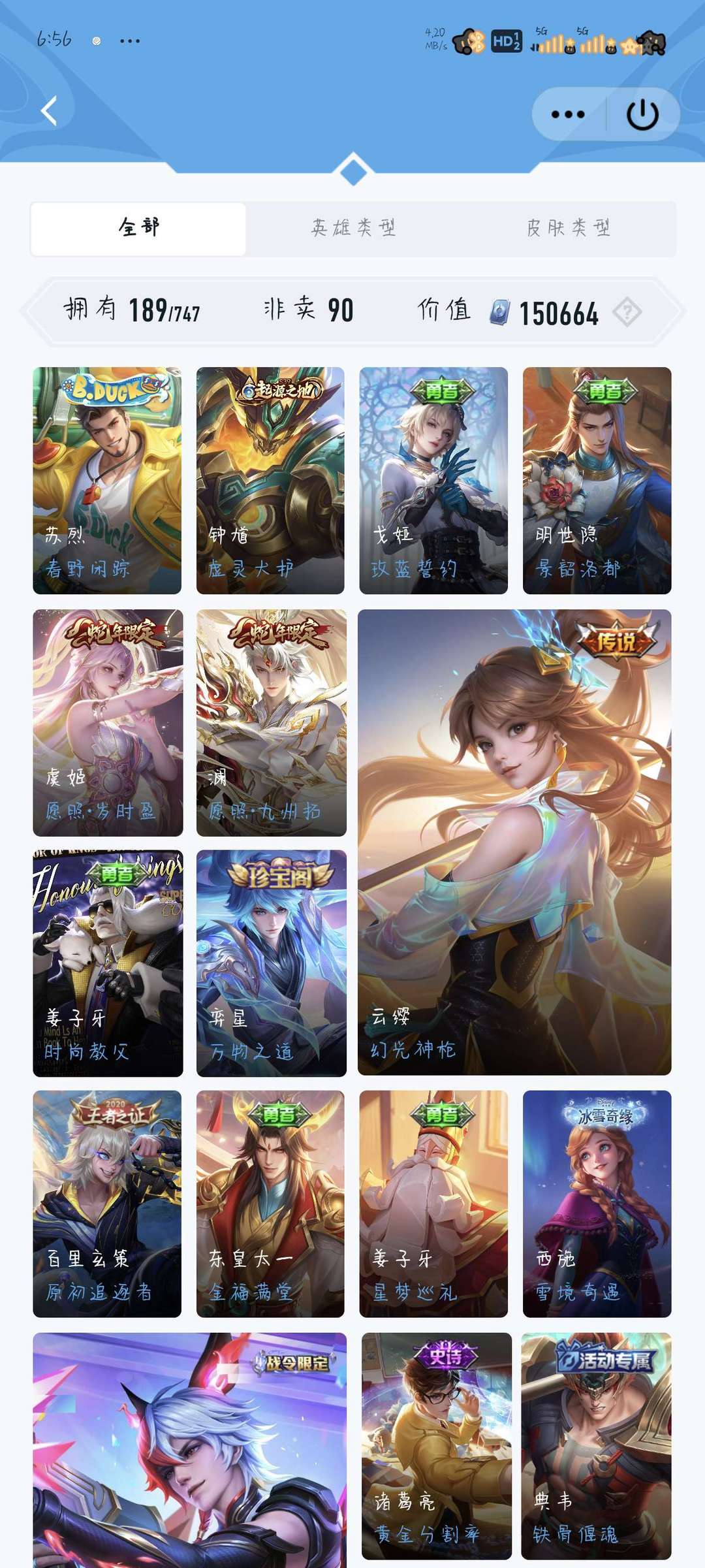 全英雄272皮肤 诸葛亮星域神启 万战金标号 低活跃度带妹神号
