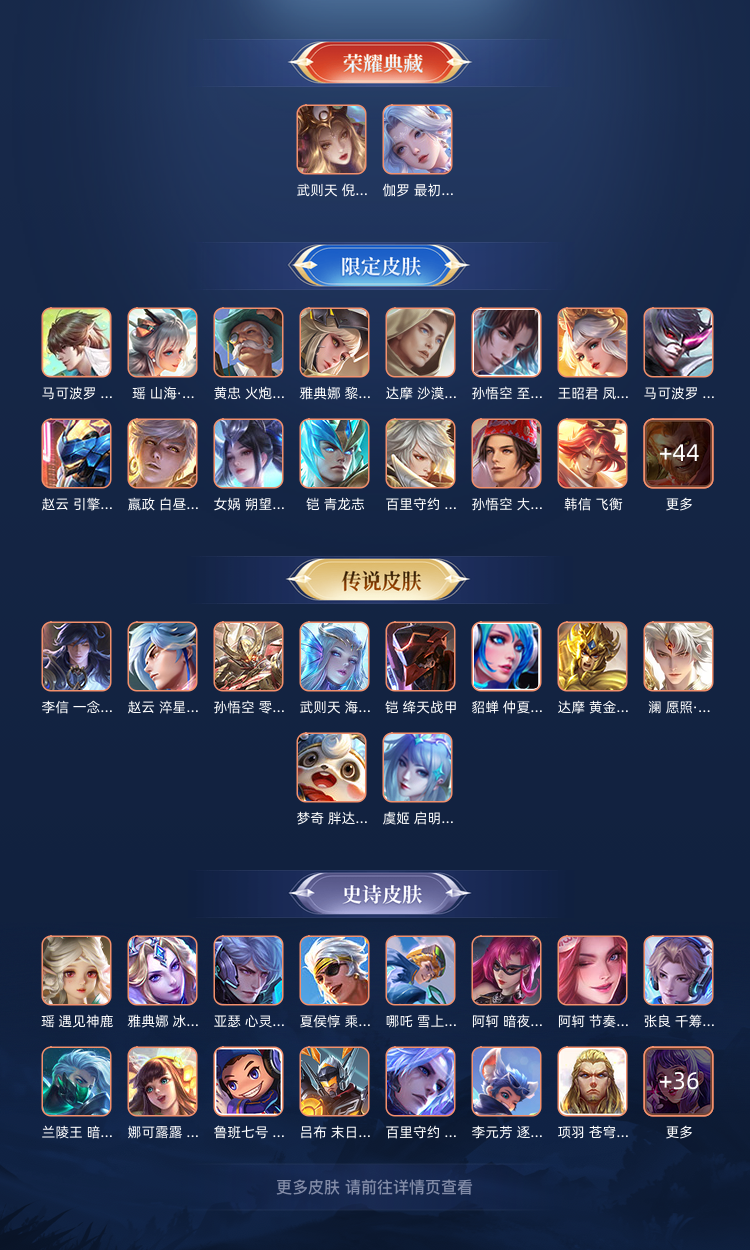 【V7 272皮】李白典藏,白虎志,至尊宝,孙行者,李信年限,女娃年限,马超年限,269个皮肤: