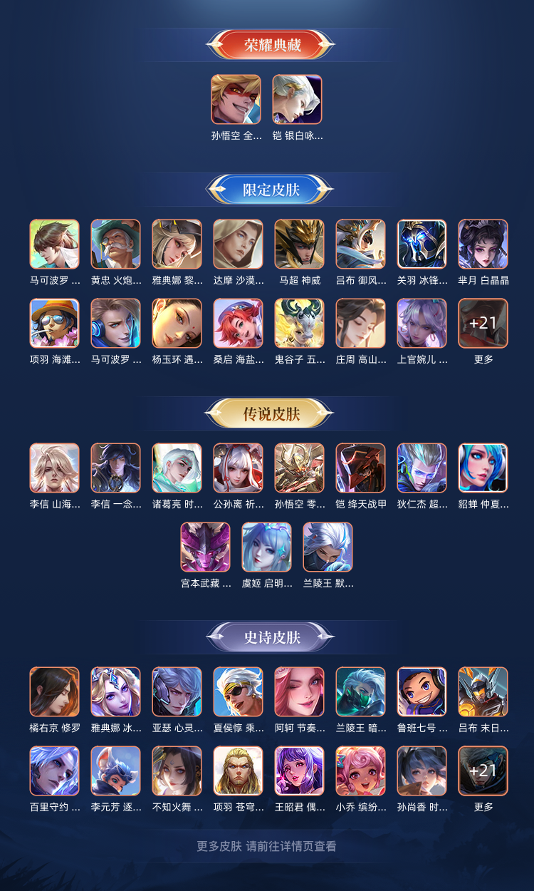 【V7 281皮】至尊宝,李白,孙悟空,诸葛亮,云中君,百里玄策,百里守约,李信,花木兰,瑶,